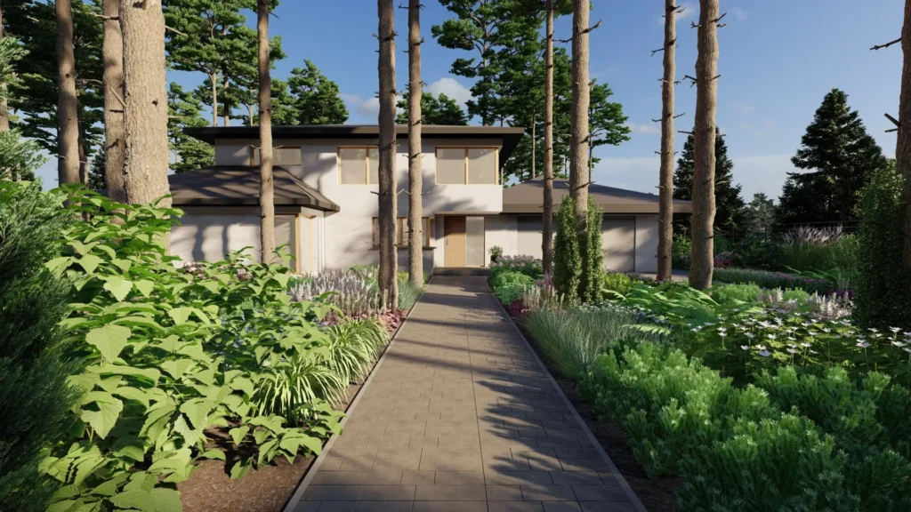 Projektowanie ogrodu w otoczeniu naturalnego lasu to wyjątkowe wyzwanie. Zamiast zmieniać krajobraz, naszym celem było podkreślenie jego naturalnego charakteru i stworzenie przestrzeni, która harmonijnie współgra z sosnowym lasem.